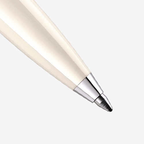 The Souverän M405 Silver-White fountain pen with differential piston mechanism has a 14-carat/585 completely rhodium-plated gold nib. The matching ballpoint pen is available with push-button mechanism.