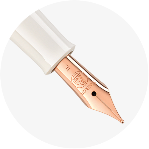 Precious resin and a special color granulate with copper-colored particles create an enchanting, shimmering effect. The world of Classic writing instruments experiences a premiere with the use of rose gold plated decorative elements. The warm copper tones of the barrel and the elegant decorative elements in rose gold give the fountain pen an exclusive touch.